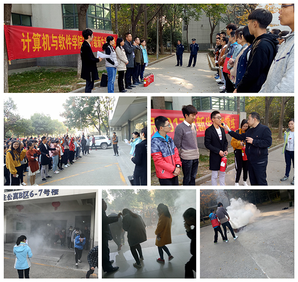 活动开始,刘英慧书记对此次消防演练做了动员:她指出学院长期以来高度重视消防安全工作,开展此项活动旨在增强大家的安全意识,帮助大家掌握消防逃生方法和突发应急处理方法,此次演习活动也将拉开计算机与软件学院消防安全活动月序幕。随后,包迎华副处长跟同学们分享了近几年大学校园发生的宿舍安全案例。接下来,陈薇老师做了消防知识讲解,并展示了消防灭火器的使用方法。下午2:30,消防疏散演习正式开始,同学们积极配合,服从指令,在短时间内全部按照疏散路线,紧张而有序的从宿舍内撤离到空旷地带。期间还组织了消防知识问答环节,同学们积极参与答题。最后是分组灭火器实战演练。同学们有条不紊,迅速的扑灭了火势。活动结束后,吴东奇老师指出了同学灭火实战中存在的不足,点评了同学灭火动作要领,对同学们提出了几点要求,他指出同学们要自觉遵守消防安全管理规定,在平时要杜绝使用大功率电器以及各类火种,养成良好的安全意识,为创造一个平安校园环境。